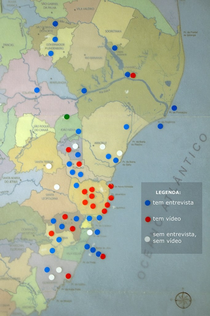 Muito se tem falado sobre cartografias. Ao longo do projeto, alimentamos planilhas de acompanhamento da pesquisa de campo, ou de produção audiovisual sobre o congo, ou ainda das bandas que foram às principais festas. E produzimos diversos mapas, tanto em papel quanto digitais, permitindo a visualização geográfica da distribuição das bandas pelo estado. A experimentação com tipos e suportes diferentes de mapas e tabelas contribuiu para um entendimento mais complexo do que os dados de pesquisa poderiam render em termos de conhecimento.