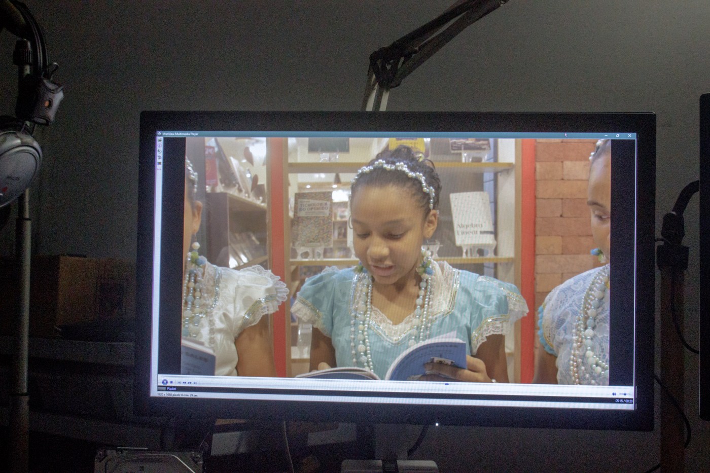 A equipe extensionista aproveitou o momento para gravar as mais jovens integrantes da banda recitando toadas do livro. O material, depois de editado, integrará outras produções do Programa.